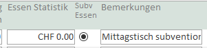 In den Standardwerten kann definiert werden, dass der Mittagstisch in den Abrechnungen, der Steuerbescheinigung, der Berechnung der Subvention und dem Subventionsbrief berücksichtigt wird. Berechnung für monatliche und jährliche Subventionsabrechnung.