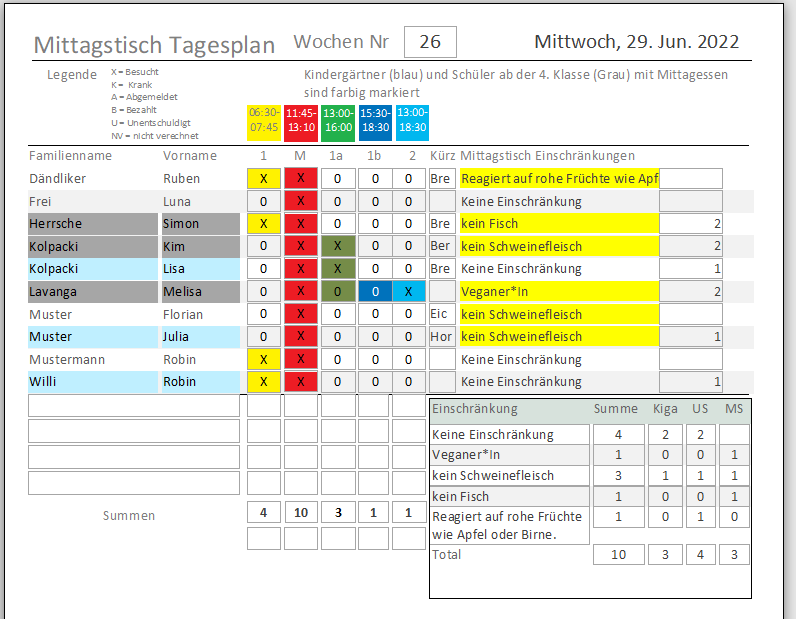- Betreuungen / Mittagessen