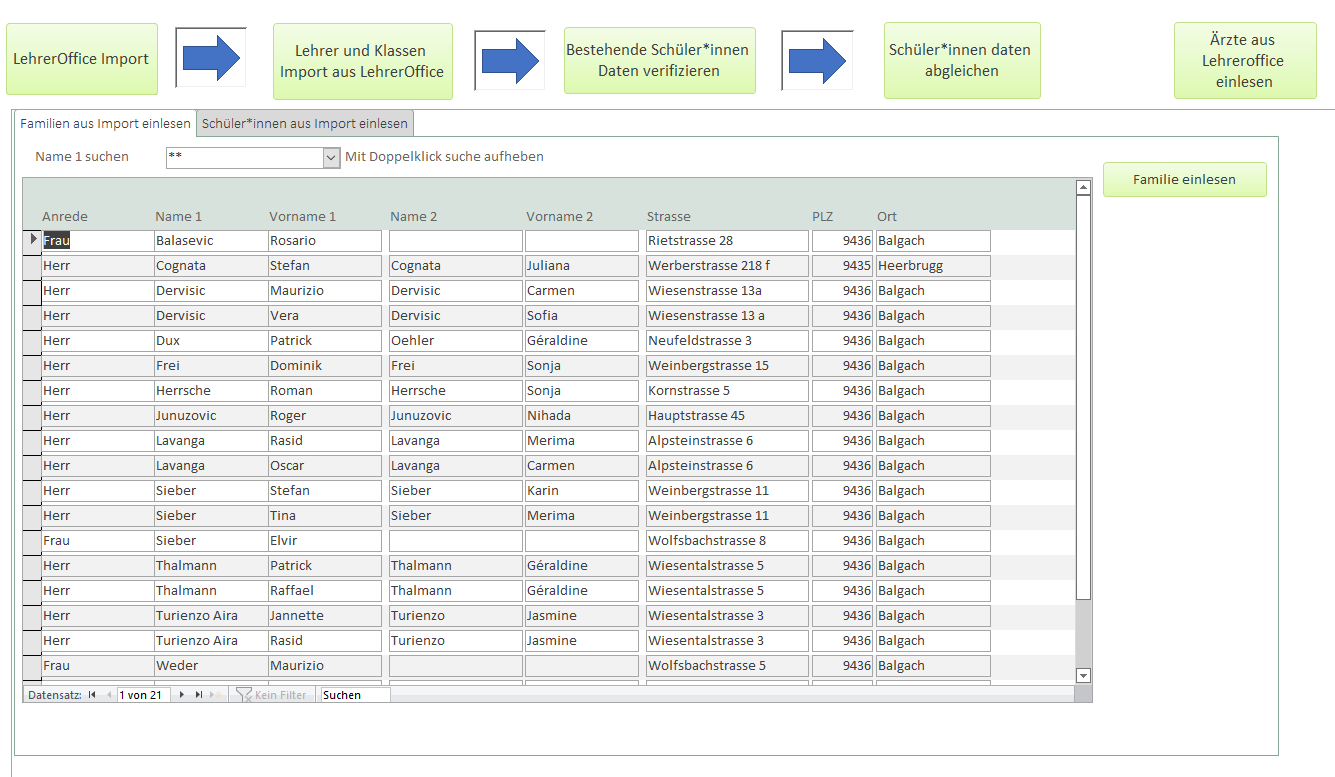 Es können Erziehungsberechtigte und Schüler*innen aus dem LehrerOffice importiert werden.