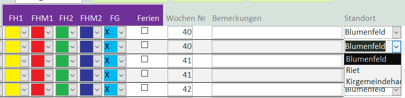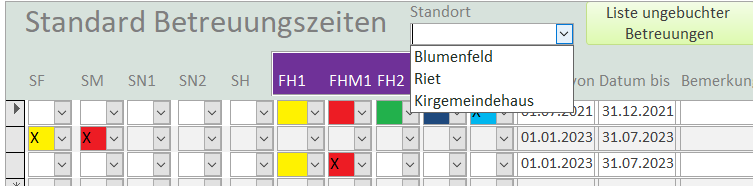 Der Tagesplan wird über das Listenfeld «Standort» gefiltert. Mit einem Doppelklick im Listenfeld können alle Standorte angezeigt werden.